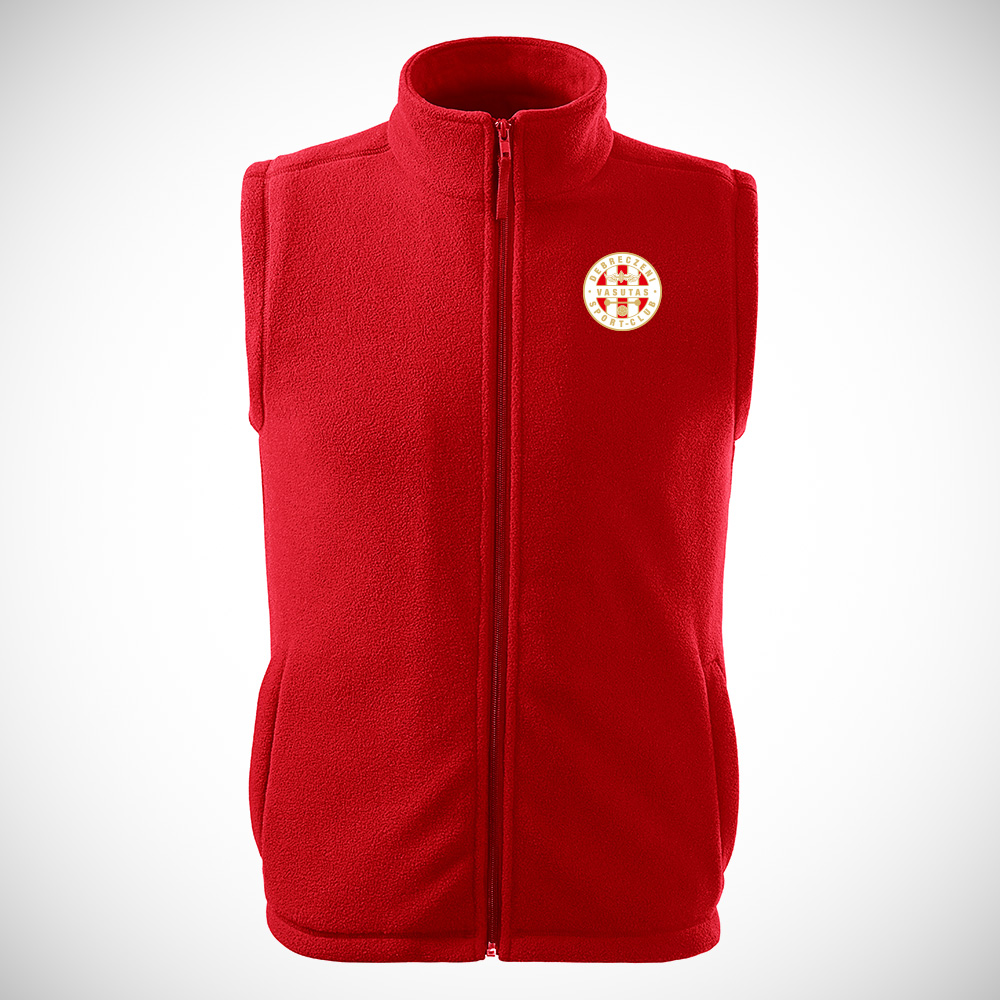 Polár mellény, 100 % poliészter, bolyhosodás ellen kezelve. Hímzett, kör alakú címerrel ellátva.
